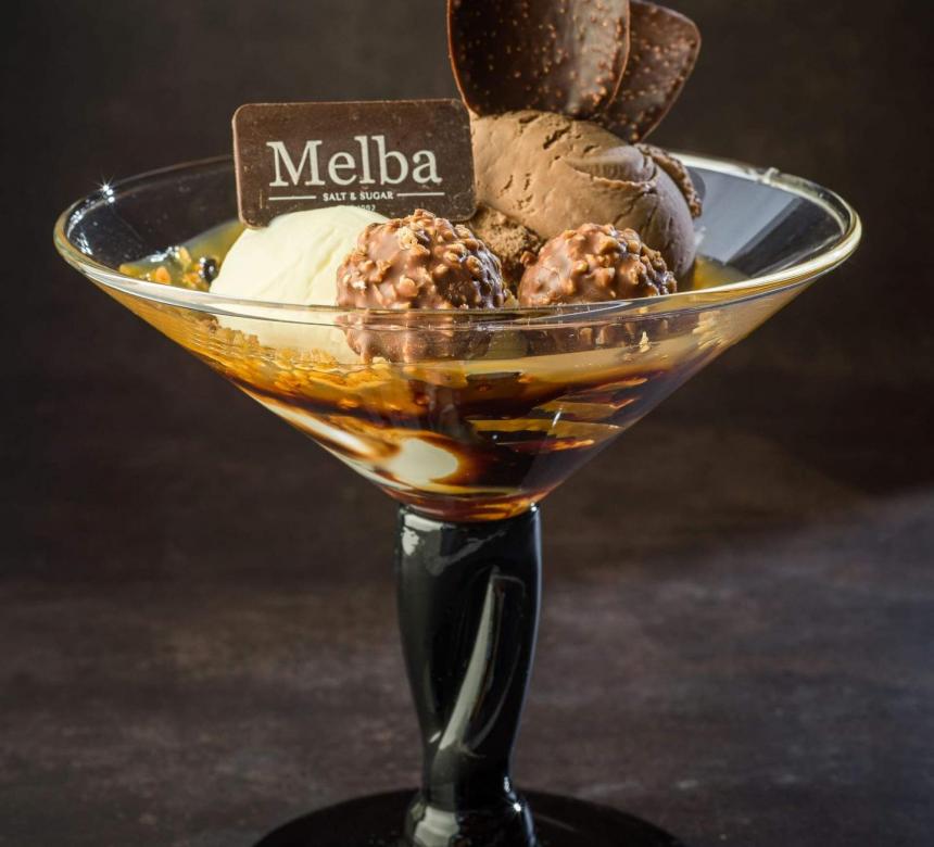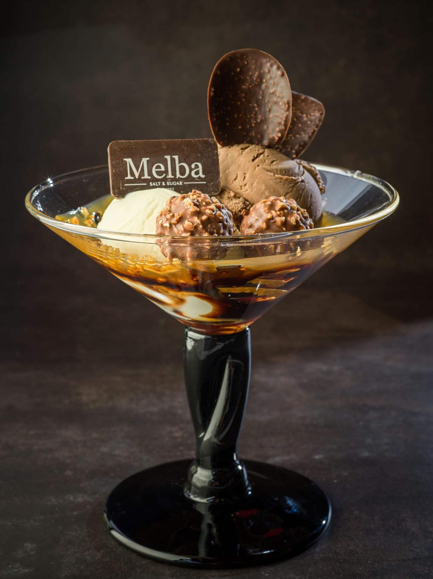 - Sweet Tooth: σοκολάτα γάλακτος, καβουρδισµένο αµύγδαλο, σιρόπι σοκολάτας & 2 µπάλες παγωτού της επιλογής σας / milk chocolate, roasted almonds, chocolate syrup & two scoops of your choice