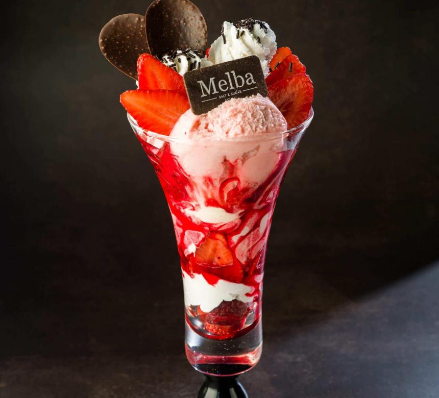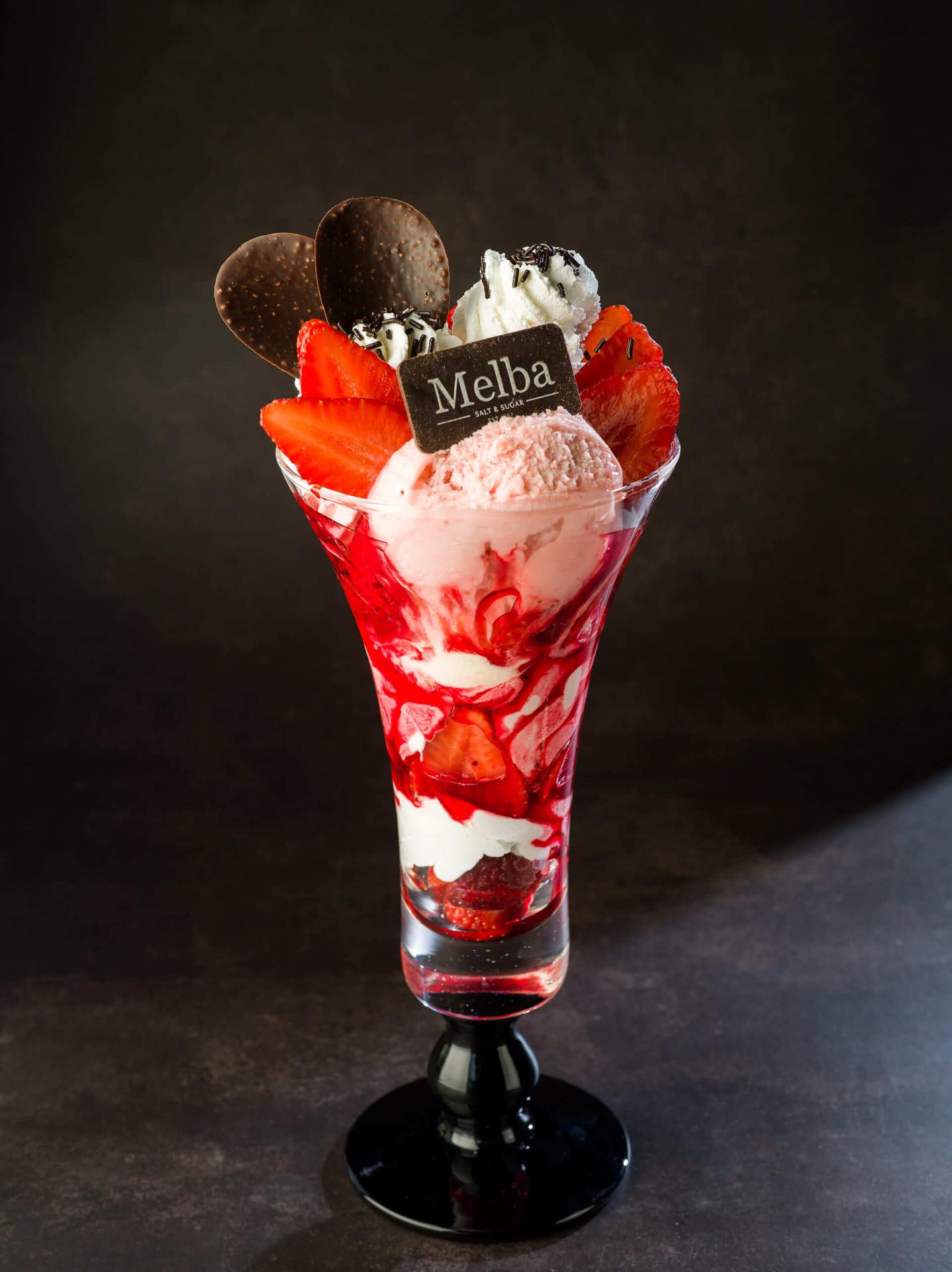 - Strawberry: µε δύο µπάλες παγωτό,φρέσκες φράουλες,σιρόπι φράουλας και σαντιγί / two scoops of ice cream, fresh strawberries, strawberry syrup and whipped cream